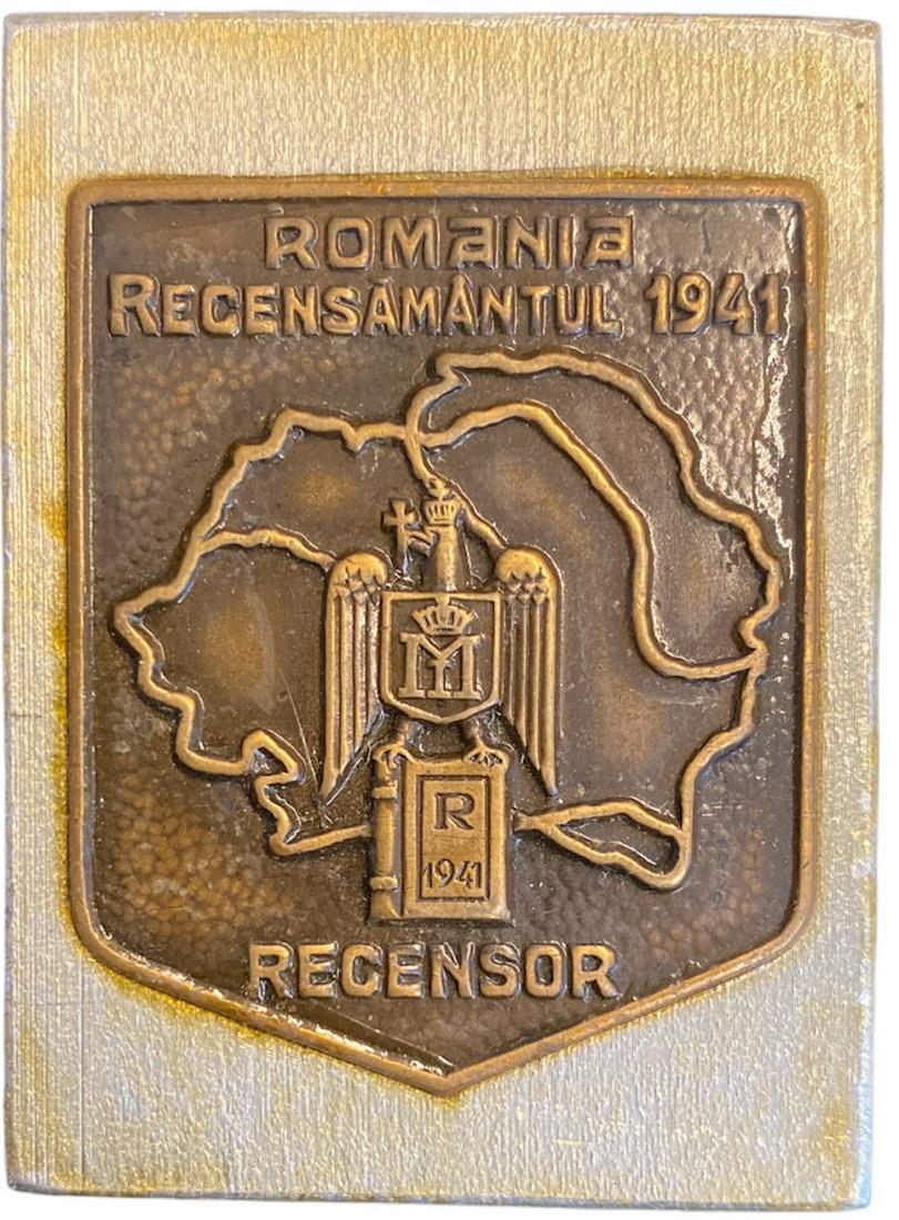 SoldCensus Representative Badge Miniature 1941Breast Badge, 15x17x mm, Bronze on aluminium plate. R! I Country: ROMANIASee Sold Price