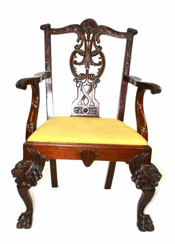 Chippendale Style Mahogany Armchair with Carved Details and Damask UpholsteryBidhaus4.2(840)$1002 days Left