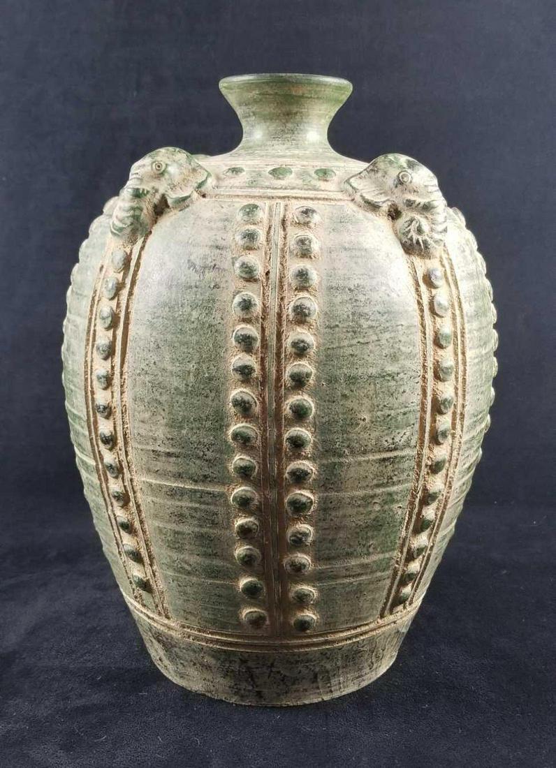 Ceramic Asian Emerald Green Elephant Vase