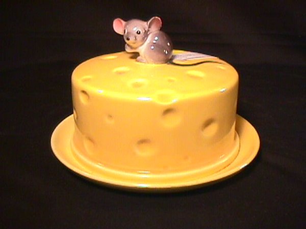 CERAMIC COVERED CHEESE DOME MOUSE ON TOP
