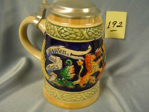 Vintage West Germany Ceramic Beer Mugs Lot of 2, Ornate Pewter Lids, German MotifsFeb 23, 2026LOT OF GERMAN POTTERY, STEIN / MUGFeb 26, 2026Small German Beer Stein44 mins Left(6) GERMAN MATTHIAS GIRMSCHEID 'LOVERS' BEER STEINS & PITCHER #250Feb 21, 2026King Werk German & Albany Beer Stein Lidded 2pcsFeb 26, 2026GERMAN WURTTEMBERG REGIMENTAL LITHOPHANE BEER STEINFeb 21, 2026VINTAGE HAND PAINTED GERMAN CERAMARTE BEER STEINMar 01, 2026German Stein22 hrs LeftVintage Lidded Musical Beer Stein with Courting Scene, Wind-Up Music Box Base6 days LeftVintage German Souvenir Beer Stein with Town Crest Medallion, Blue Relief Decor6 days LeftLidded Beer Stein DBGM Man Playing Drum1 day LeftAUTHENTIC GERMAN BEER STEIN WITH ORIGINAL BERLIN WAL PIECE TO THE TOPFeb 21, 2026Falconer & Shooter Stein w Fancy Game Animal LidMar 21, 2026Mettlach Stoneware 1923 Beer Stein6 days Left2 German 1-Liter Steins2 days LeftVintage German Lidded Beer Stein with “Paris?? Figure, Cobalt Ground, Relief Decoration6 days Left