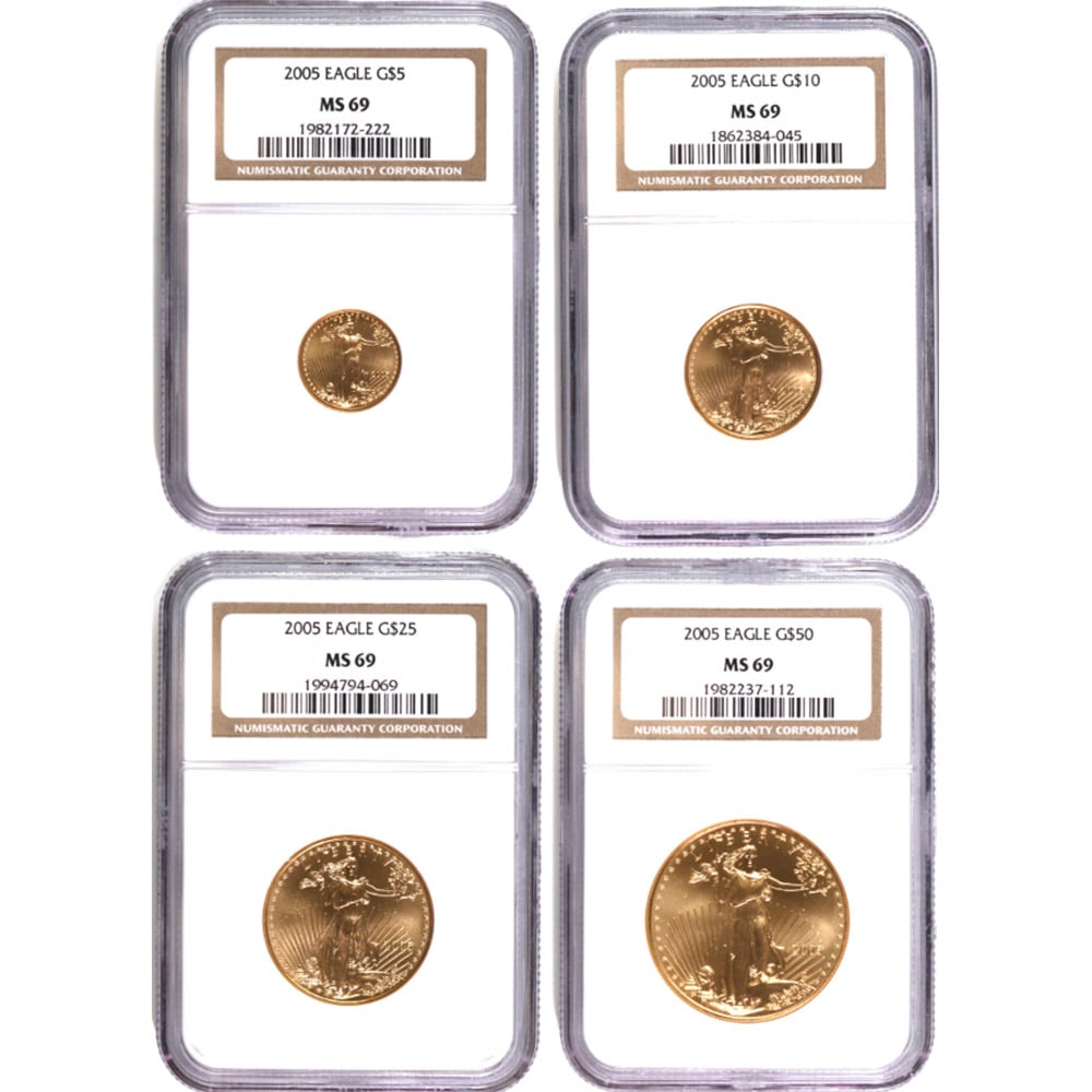Certified American Gold Eagle 4pc Set 2005 MS69 NGC