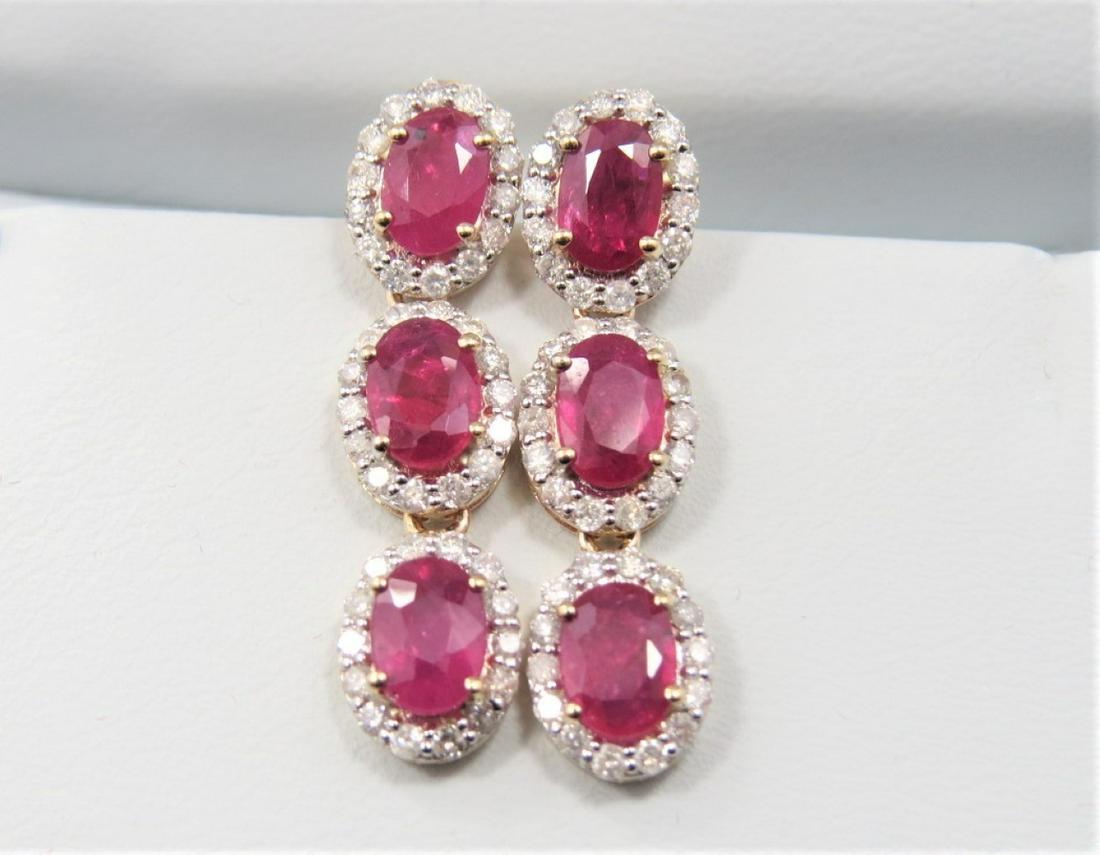 14k Gold 6.00ct Ruby 3.0ct Diamond Earrings