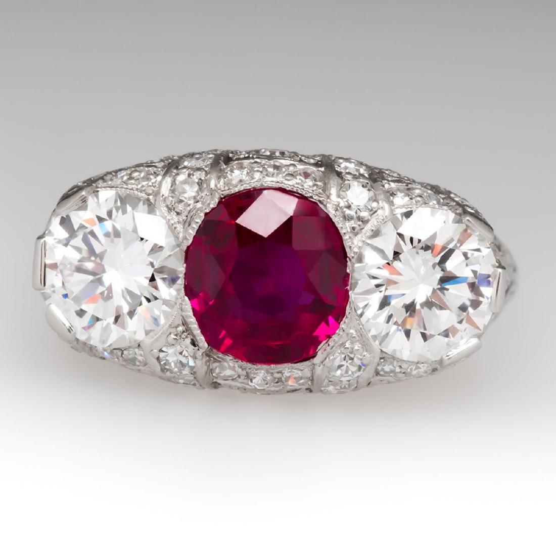 CERTIFIED PLATINUM NATURAL RUBY & DIAMOND ART DECO RING
