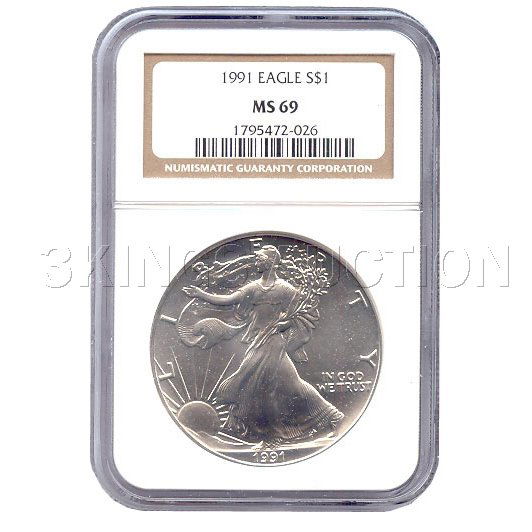 1991 MS69 CACG Certified American Silver Eagle Dollar Coin UncirculatedMynt Auctions4.4(836)$100(1 bid)2 days Left