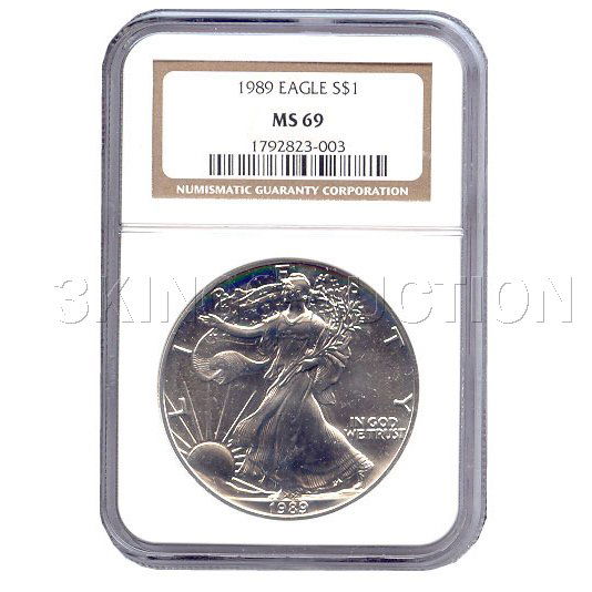 Sold1989 Silver Eagle NGC MS-691989 Silver Eagle NGC MS-69 Retail Estimate: $40 Wholesale Bid: $30See Sold Price