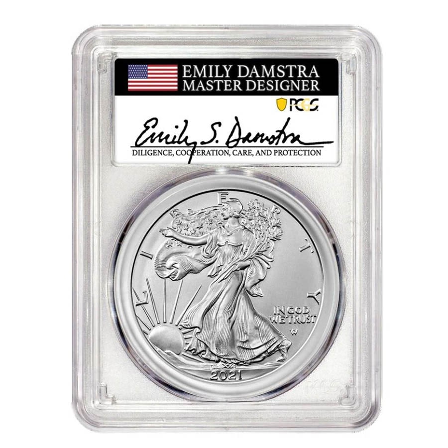 Certified Uncirculated Silver Eagle 2021 Type-2 MS70 FS Emily Damstra Signed