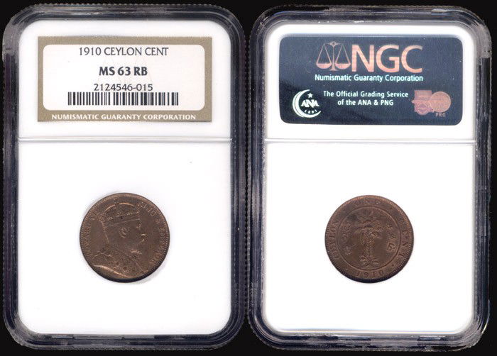 Ceylon KEVII 1c 1910 NGC MS63RB