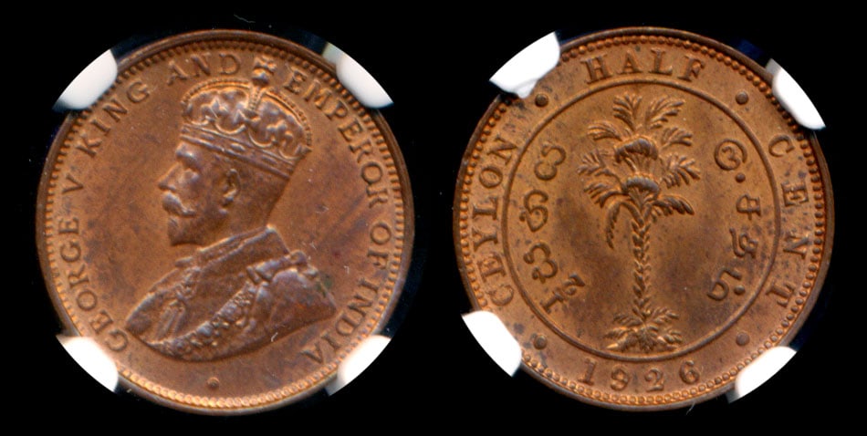 Ceylon KGV 1/2c 1926 NGC