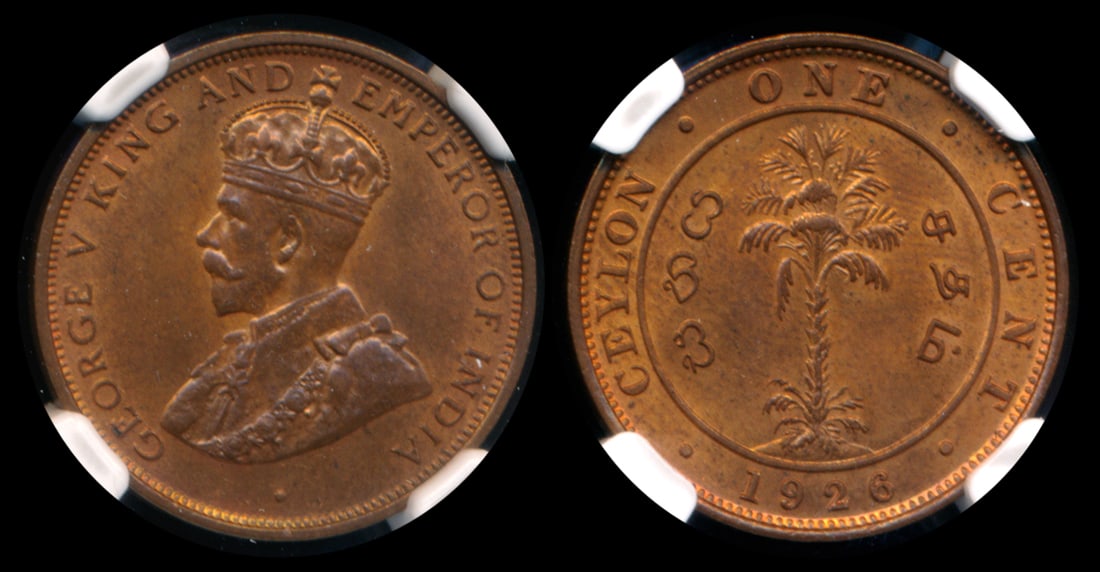 Ceylon KGV 1c 1926 NGC MS65RB
