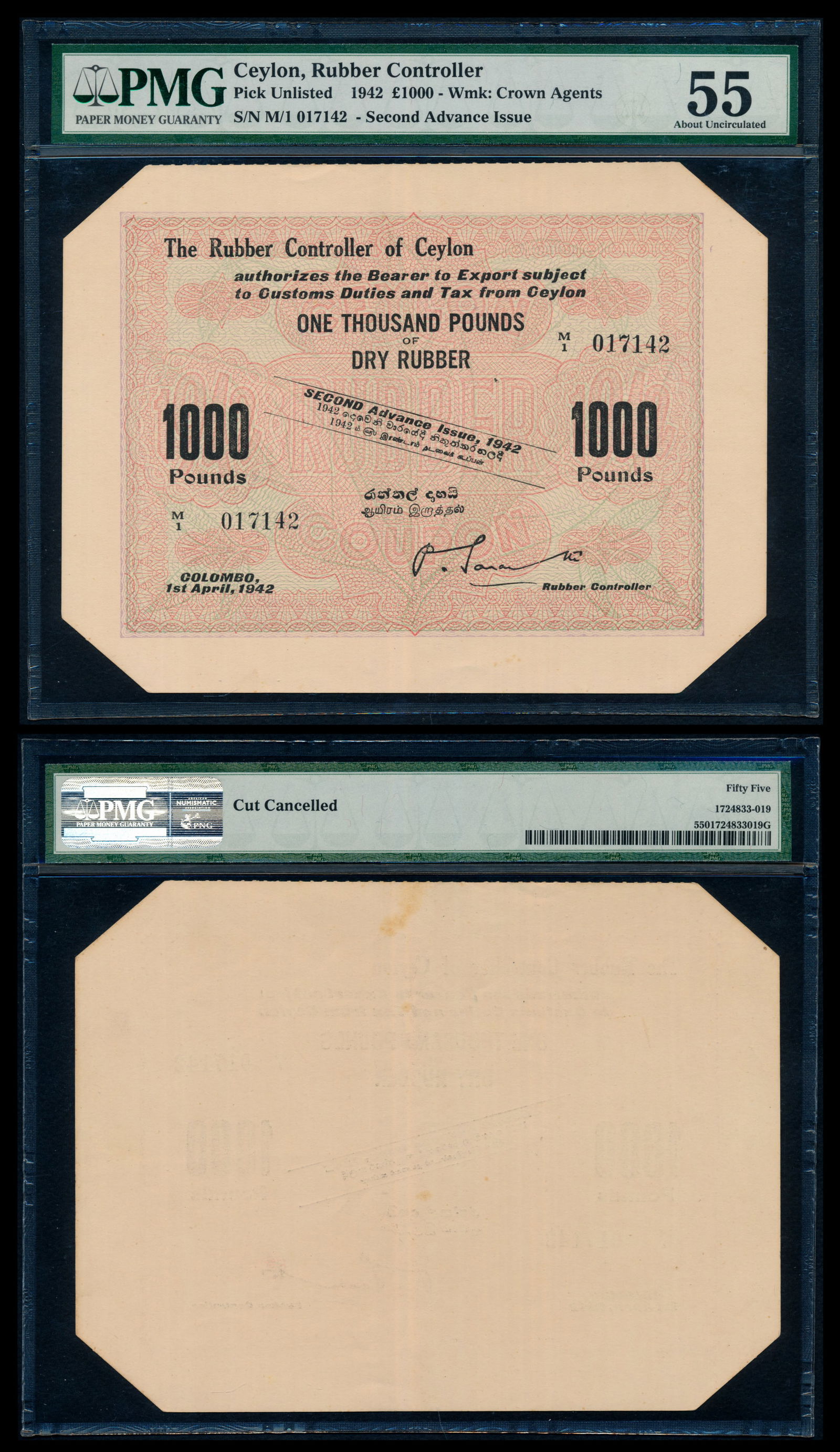 Ceylon Rubber Controller 1000 Pounds 1942