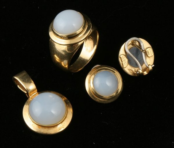 Chalcedony Pendant, Ring and Earrings
