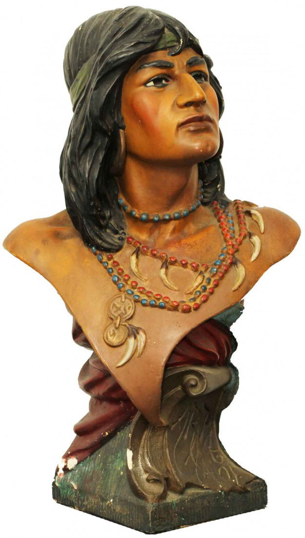 Chalkware bust of Native American warrior