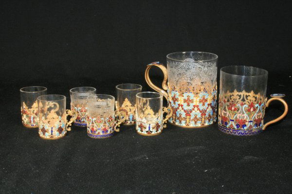 SoldG. MEGNIN FRENCH ONYX, CHAMPLEVE, CRYSTAL CLOCKG. MEGNIN, FRENCH MEDAILLE ARGENT ONYX, CHAMPLEVE, CRYSTAL MANTLE CLOCK, 19TH.C H 17" W 12" Hand cut crystal columns. Champleve cloisonee enamel accents and lower platform. Silver medal award winner "See Sold Price