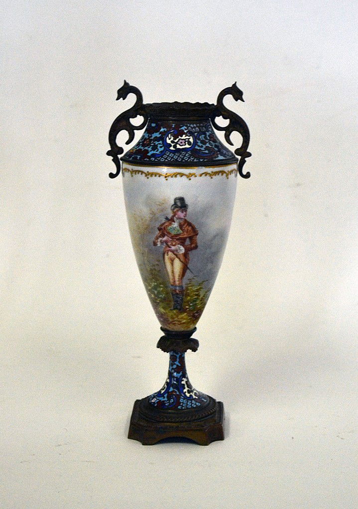 Champleve and Porcelain Vase