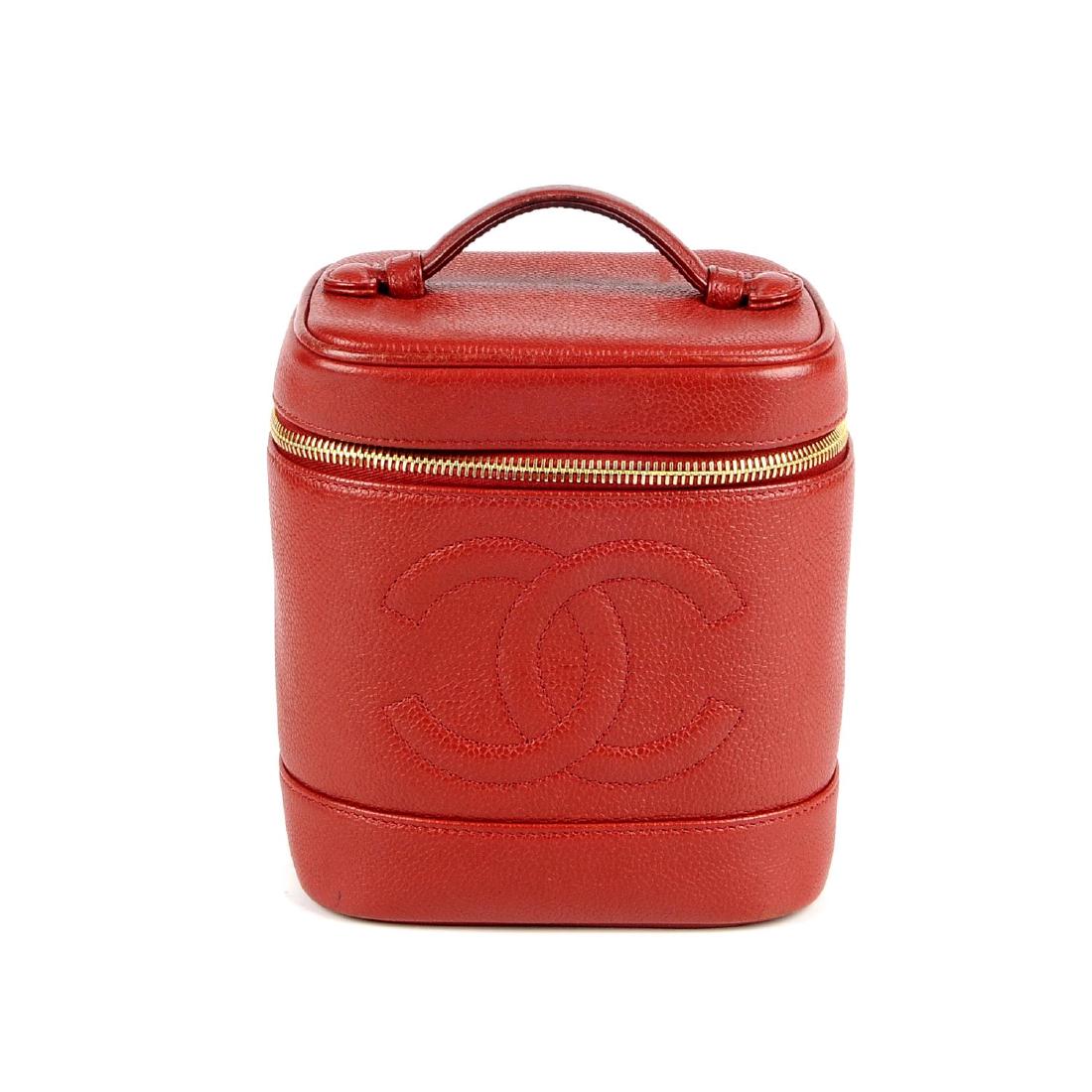 CHANEL - a red caviar leather vanity case. Crafted from