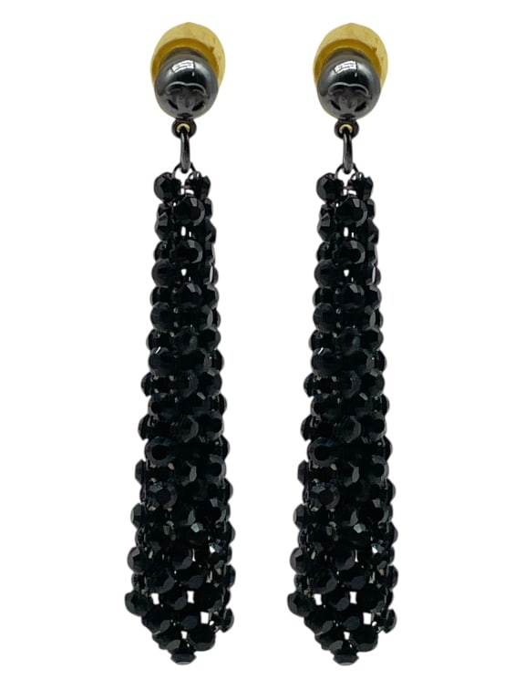 CHANEL BLACK MESH DANGLE EARRINGS