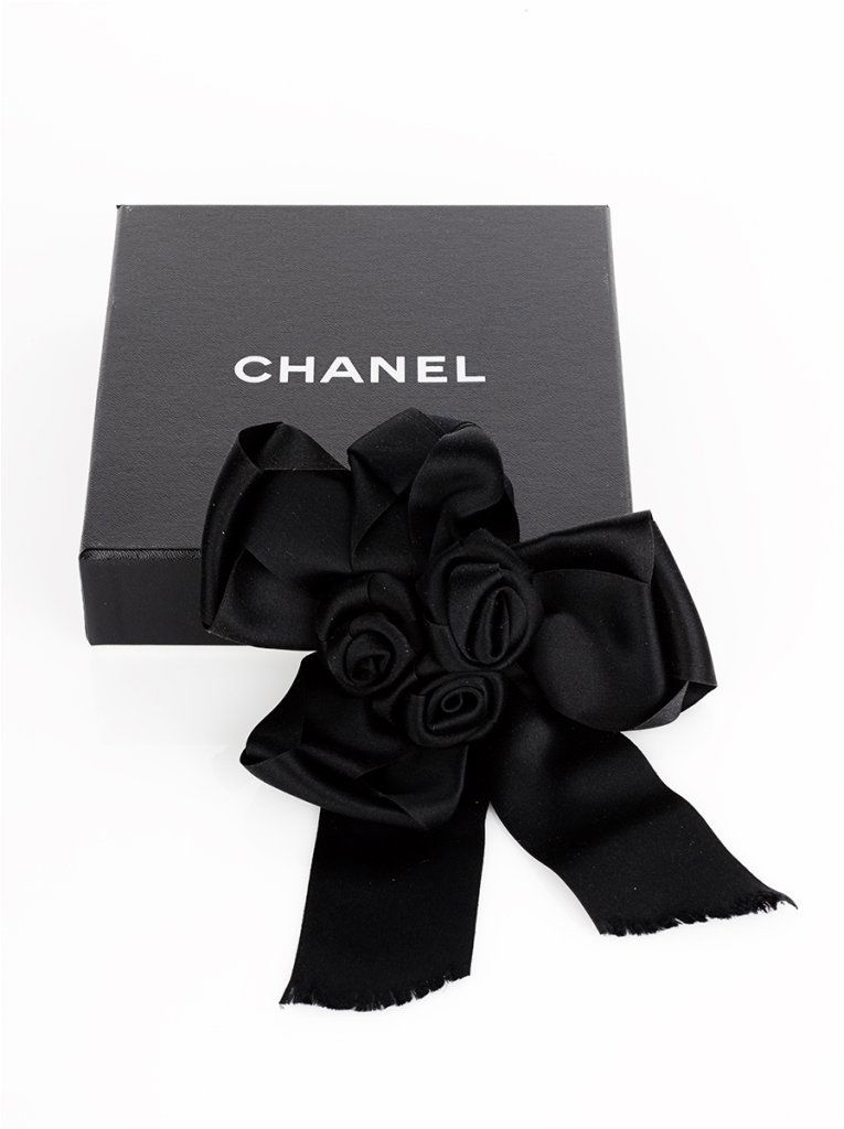 Chanel Dark Navy Satin Bow Brooch Pin Gold-tone Corsage