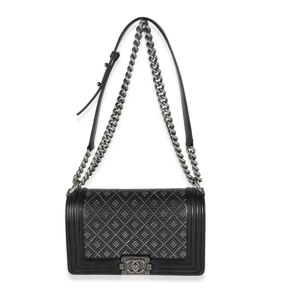 Chanel Black Studded Lambskin Medium Boy Bag