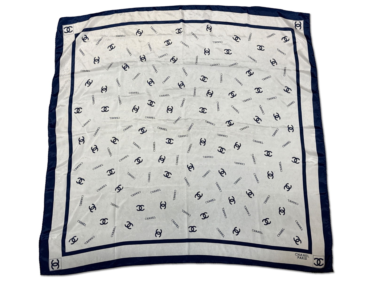 Chanel Blue/White Logo Silk Scarf