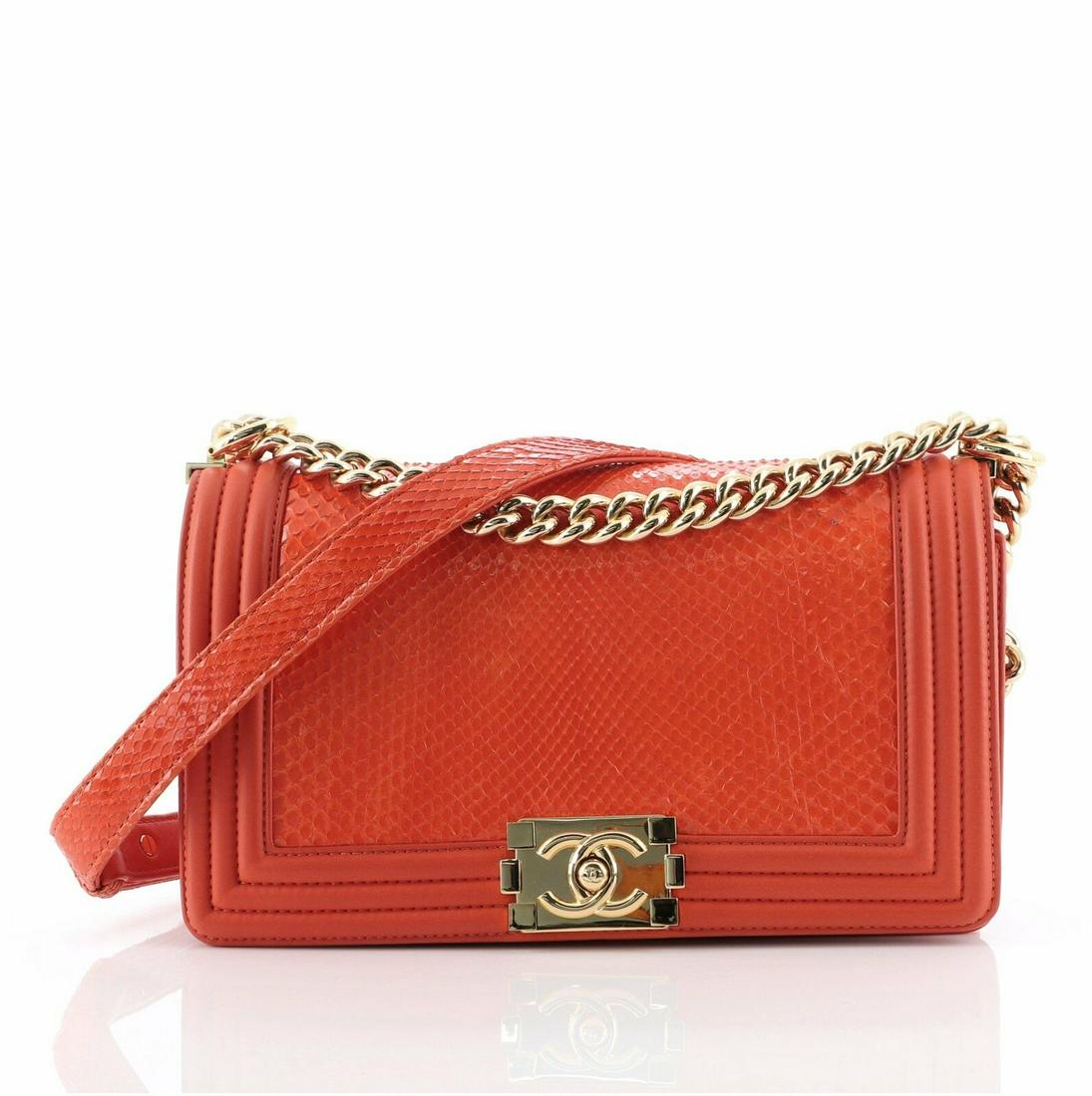 Chanel Large 19 Lambskin Flap Bag Orange Leather CC Twist Lock