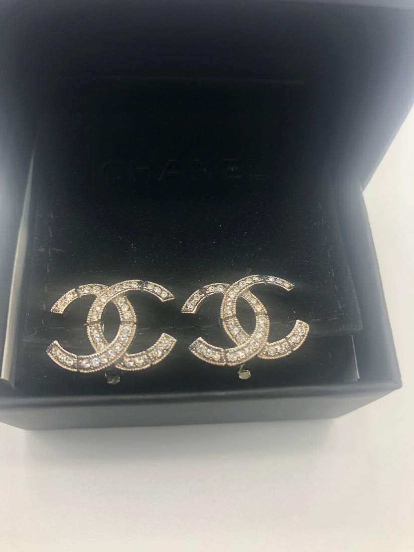 Chanel CC Crystal Drop Earrings Silver Plated Push Back Italy
