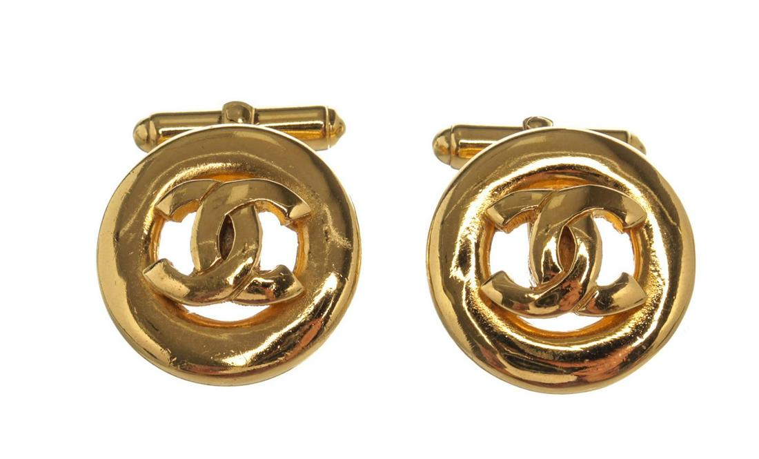 Chanel CC Logo Gold-tone Cufflinks