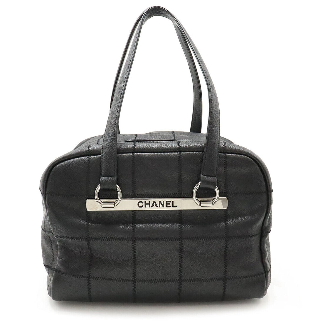 CHANEL BLACK CALFSKIN CHOCO BAR HANDBAG