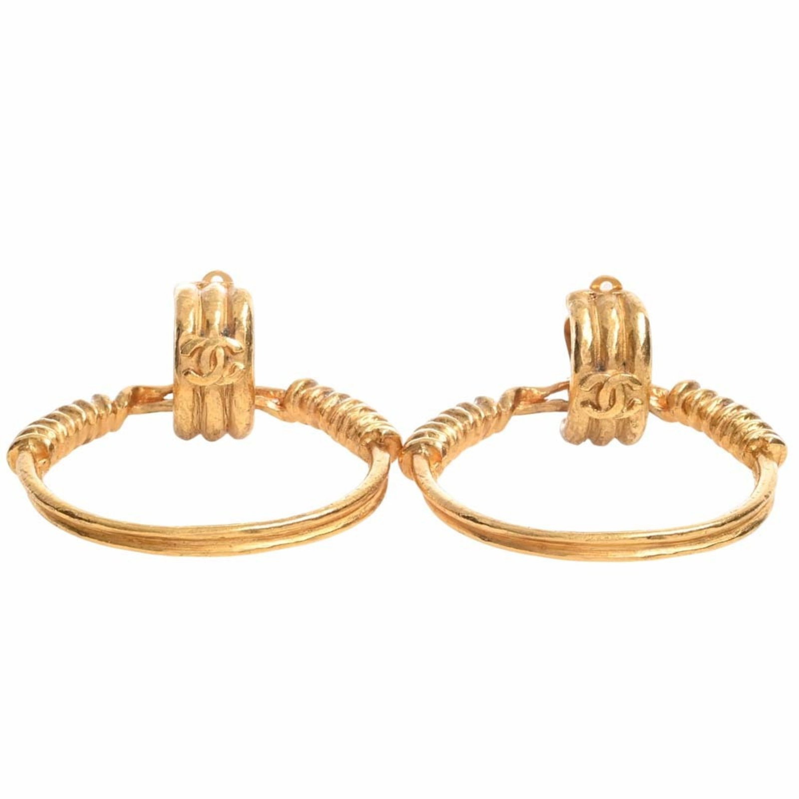 CHANEL HOOP DANGLE EARRINGS CLIP-ON GOLD