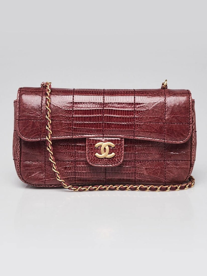 SoldChanel Red Lizard Shoulder Mini Flap BagDESCRIPTION: Chanel red lizard mini flap shoulder bag with gold toned hardware and strap. Marked: "Chanel, Made In Italy" Serial: "292210" CIRCA: 20th Century ORIGIN: Italy DIMENSIONS: H: 5" x L: 8" -See Sold Price