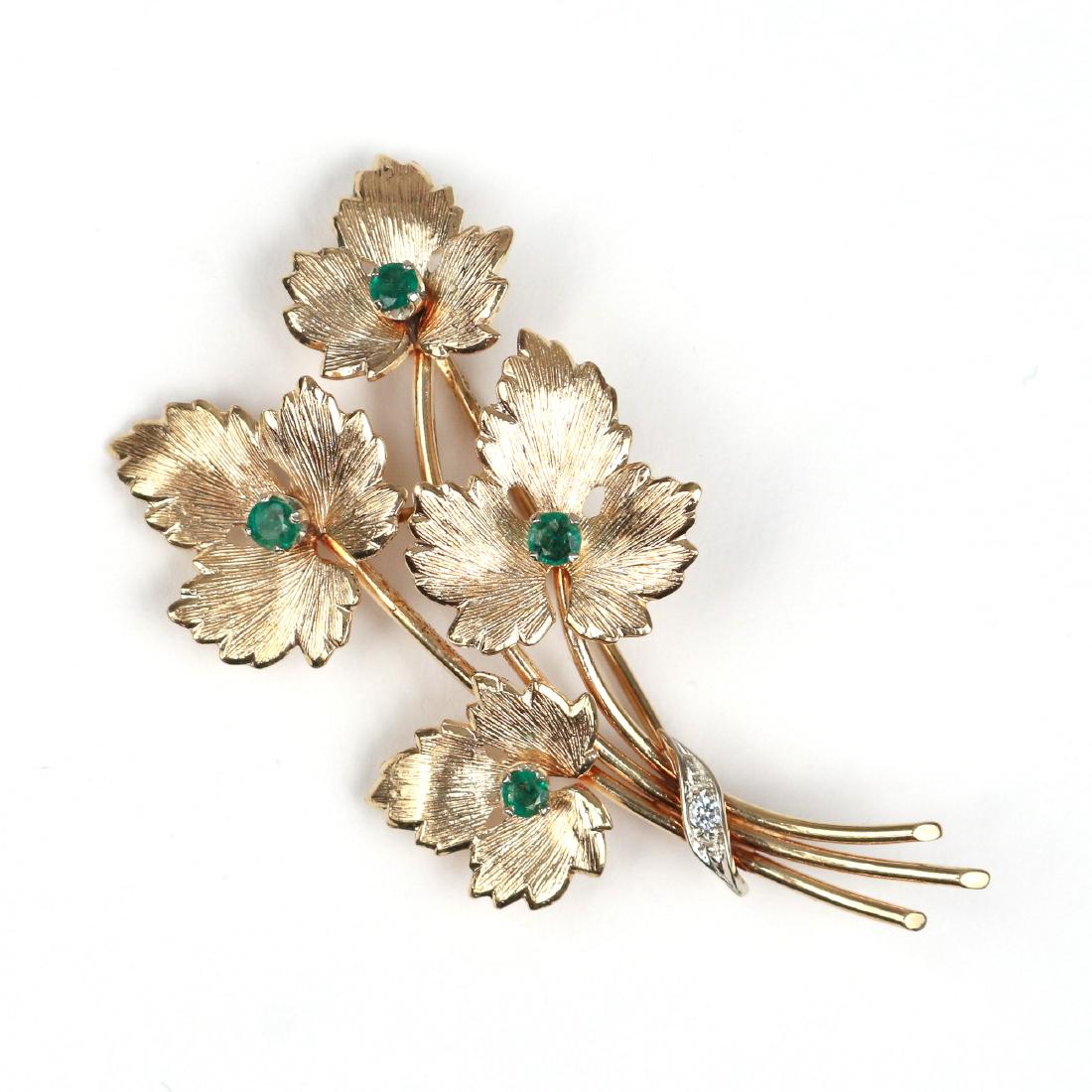 Vintage Diamond Two-Tone Flower Brooch Pin 18K Yellow Gold, 3.50 CTW, 35.2 GramsTRABERT & HOEFFER & MAUBOUSSIN 18K Brooch4 days LeftEmerald and Diamond Brooch in 18K Gold and Platinum by Trabert Hoeffer Mauboussin23 hrs LeftSPRITZER & FURMAN DIAMOND BROOCH RUBY 18K GOLD LEAF PETALS FLOWER PINJul 13, 2025Womens Vintage Estate 18K Gold Emerald Flower Brooch3 days LeftSpritzer & Furman 18k Gold Diamond Ruby Flower Brooch Pin4 days LeftAntique 18K Rose Gold and Silver 1.50ct Diamond and Emerald Brooch - 7.50ct. tw.4 days LeftPlatinum Emerald & Diamond Brooch4 days LeftDesigner Dankner Flower Pin with Emerald, Sapphire, Ruby, and Diamond in 18K Yellow Gold1 day LeftSTERLÉ, YELLOW GOLD AND DIAMOND BROOCH1 day Left18K Yellow Gold with 3.50tcw Diamond Hammermann Brothers Designor Broach6 days LeftBrooch - 14 kt. Yellow gold, Lovely Rare 14k Gold & Diamond Rose Flower Brooch - 0.70ct. tw.4 days Left18K Diamond and Emerald Flower BroochMar 27, 2026White gold and emeralds flower pendant; 13.7 gr.Mar 29, 202614k Gold 5.00ct Emerald 2.00ct Diamond Ring2 days LeftArt Deco Platinum 11.00 Ct. Diamond Maple Leaf Bro4 days Left