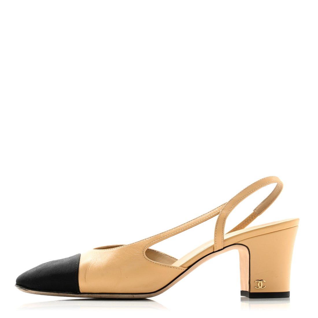 Leather Chanel Women's Cap Toe CC Slingback Flats