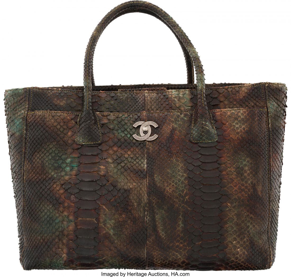 Chanel Green & Brown Python Cerf Tote Bag Condit