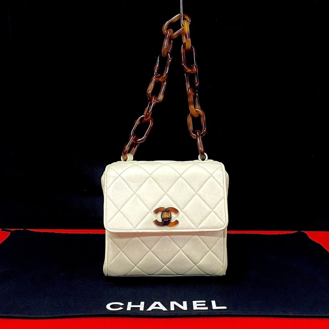 Chanel Handbag Lambskin, Plastic White Chain Coco