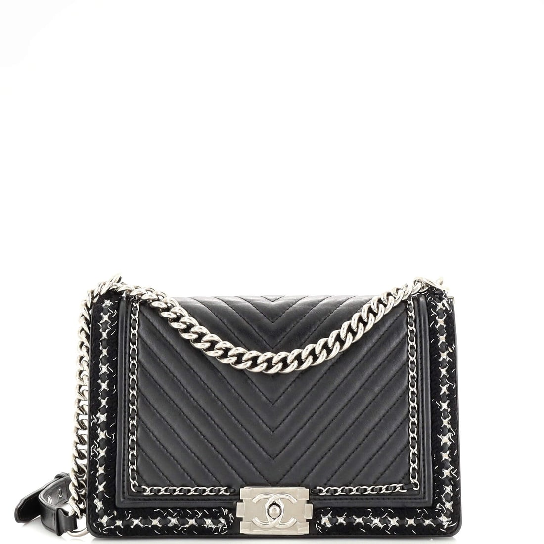 Black Lambskin CHANEL Boy 25 Chain Shoulder Bag with Silver HardwareBidhaus4.2(848)See Sold PriceApr 01, 2026