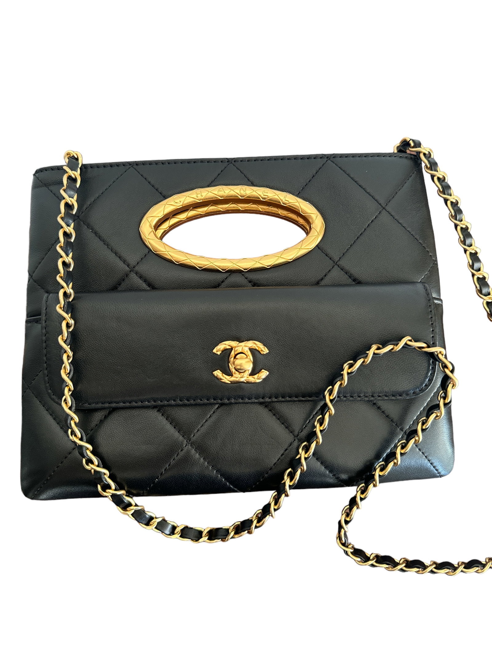 CHANEL BLACK LAMBSKIN 2WAY HANDBAG