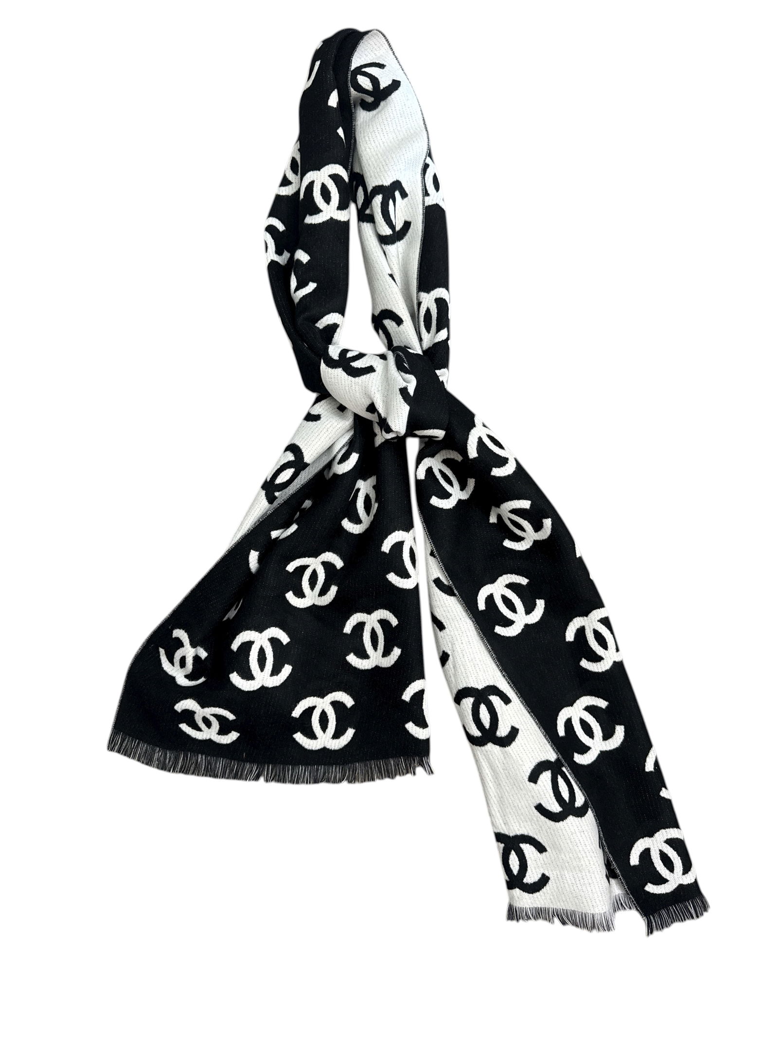 CHANEL Black & White CC Logo Beaute Scarf & Original Box