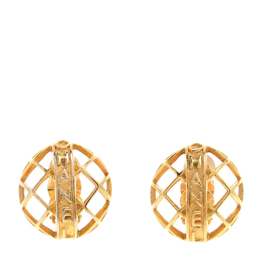 Chanel CC Logo Gold Plated Metal Round Earrings with Push Backs
