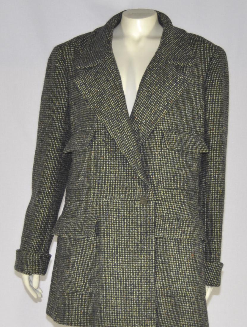 SoldChanel Wool Tweed Jacket, Fall 1997Chanel Wool Tweed Jacket, Fall 1997 Purple and gray wool/silk blend tweed jacket with notched lapel, four front curved patch pockets, and center front button closure. Label: Chanel / Boutique Size LabSee Sold Price