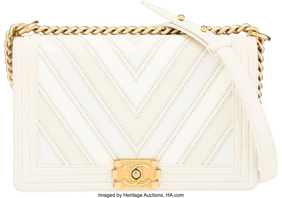 Chanel White Calfskin Pearl Chevron Small Boy Bag with Authenticity CardMynt Auctions4.4(841)$1004 days Left