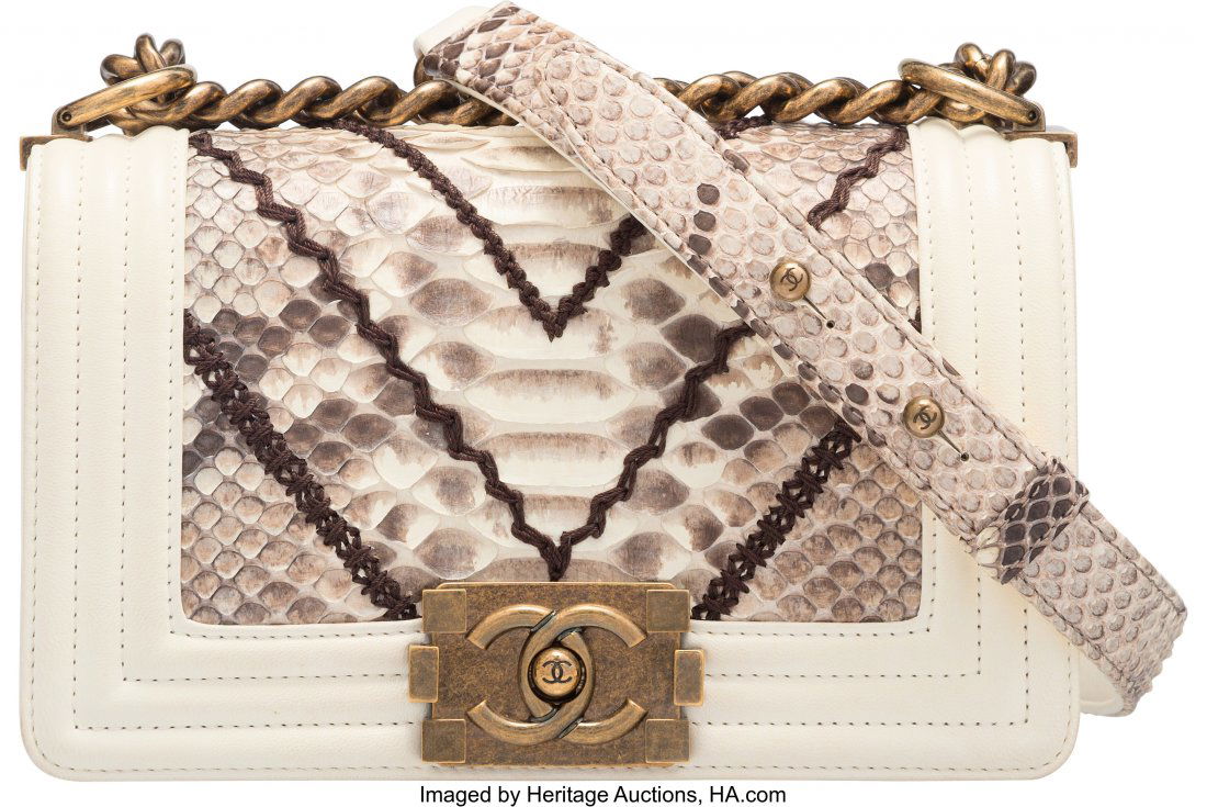 Chanel Off White Python Chevron Stitching Small
