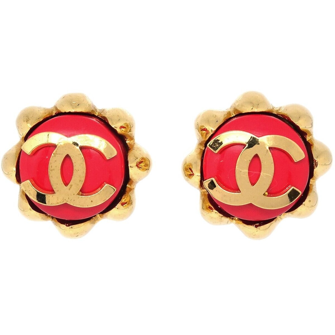 Chanel Red Clip-On Button Earrings