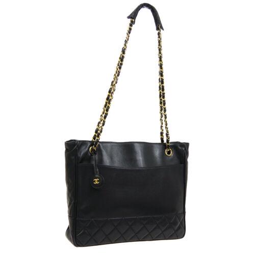 CHANEL Matelassé Lambskin Chain Tote Bag Black W1