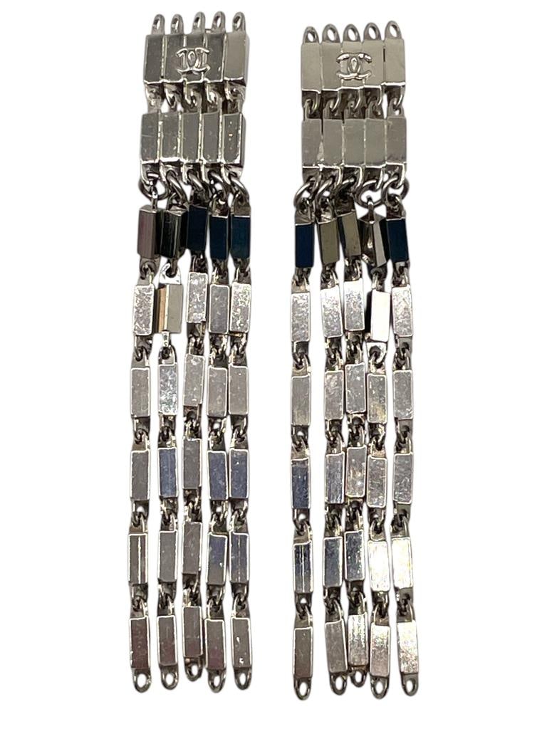 CHANEL SILVER DANGLE CLIP ON EARRINGS