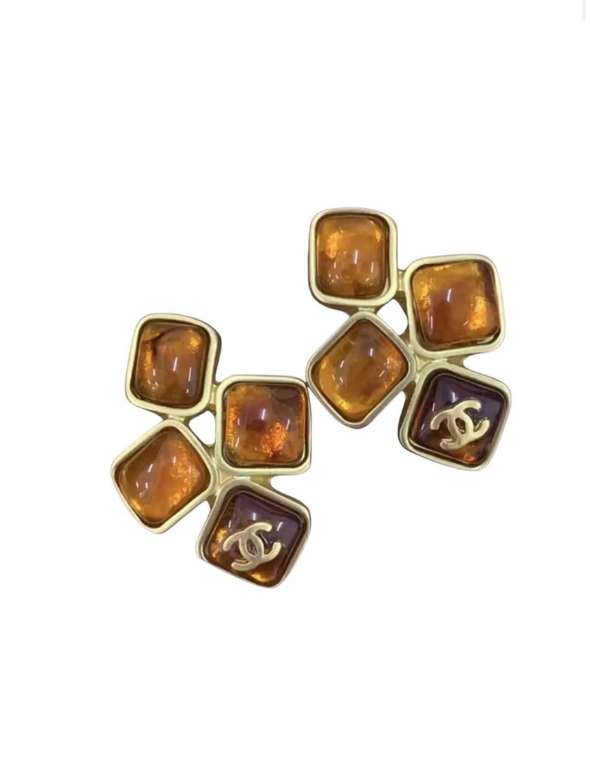 Chanel 95P Gold Brown Dangle Clip-On Earrings