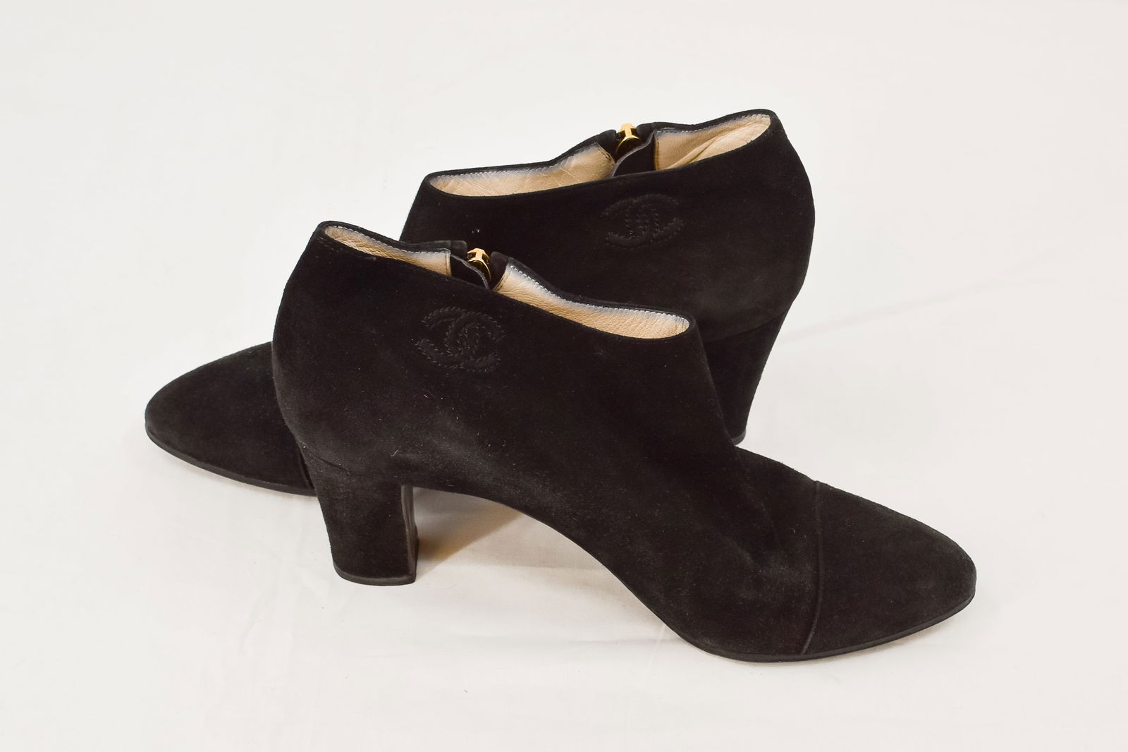 Chanel. Paire de bottines en daim irisé noir, bleu et argent. Chanel. Pair of ankle boots i...Bonhams4(380)€3003 days Left