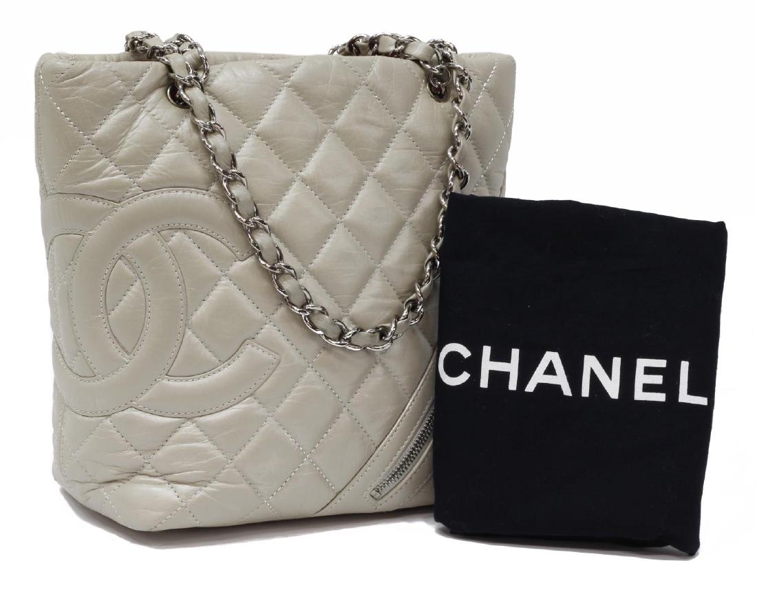 CHANEL QUILTED TAUPE LAMBSKIN LEATHER SHOULDER BAG