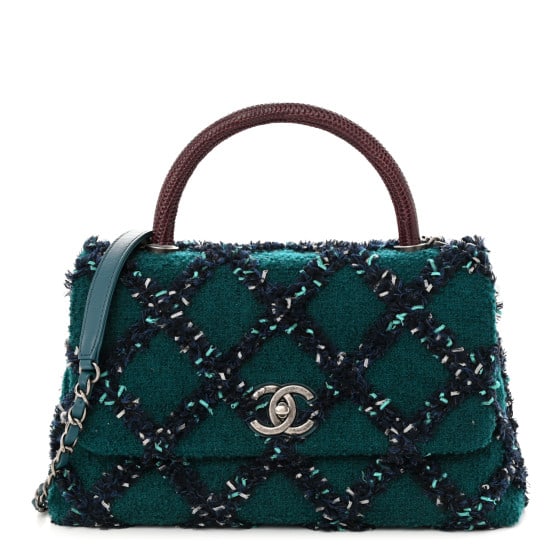 CHANEL GREEN TWEED CHAIN HANDBAG