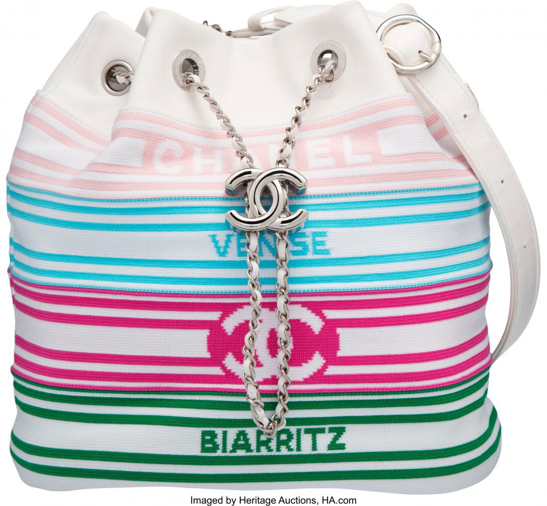 Chanel White Leather Venise Biarritz Drawstring