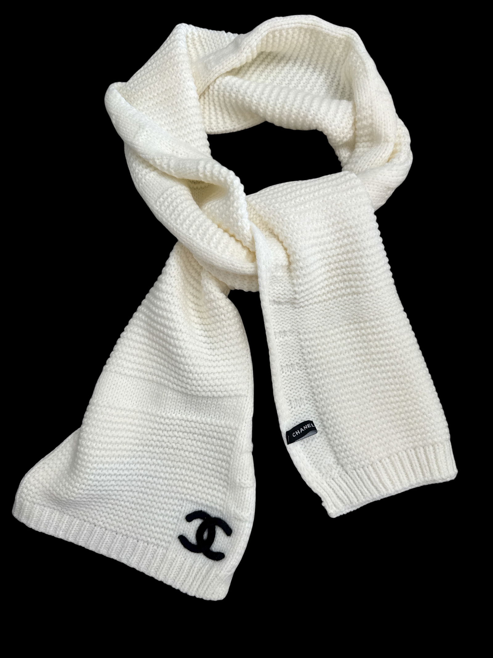 CHANEL Black & White CC Logo Beaute Scarf & Original Box